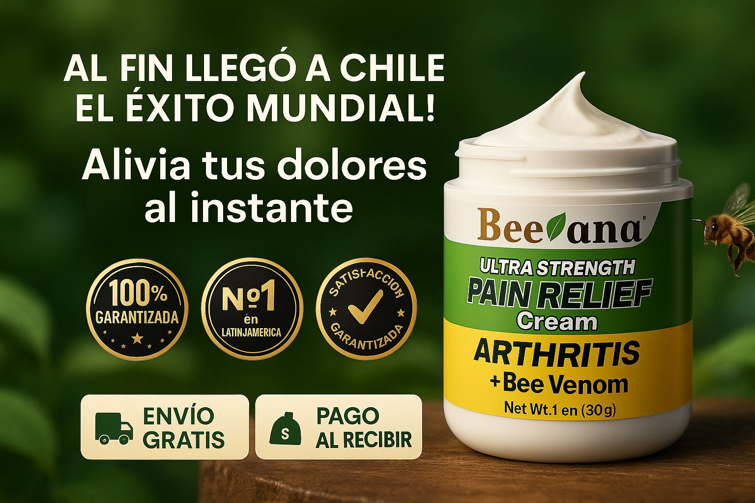 Beevana es una crema premium con veneno de abeja, árnica y eucalipto, desarrollada para aliviar dolores musculares, articulares e inflamaciones de manera rápida y natural.